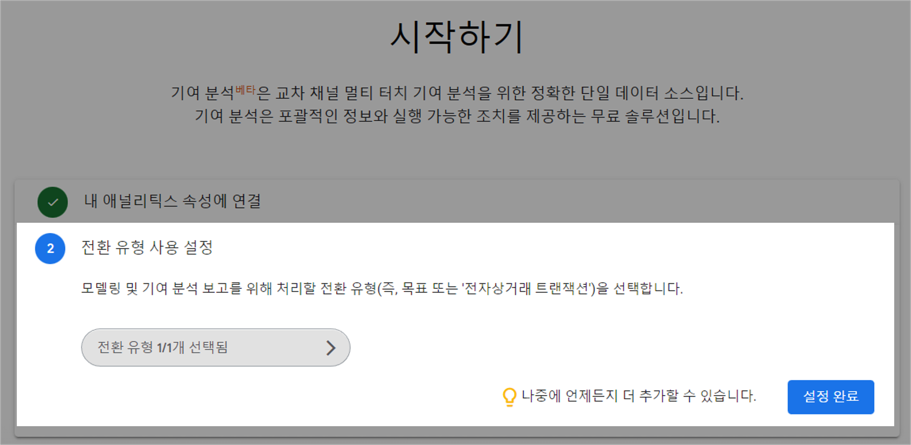 위와 같이 내 애널리틱스 속성에 연결하고 전환 유형 사용 설정만 하면 알 수 있다.