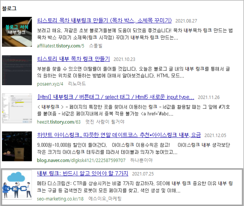 - 스니펫의 클릭 가능한 제목 또는 헤드라인