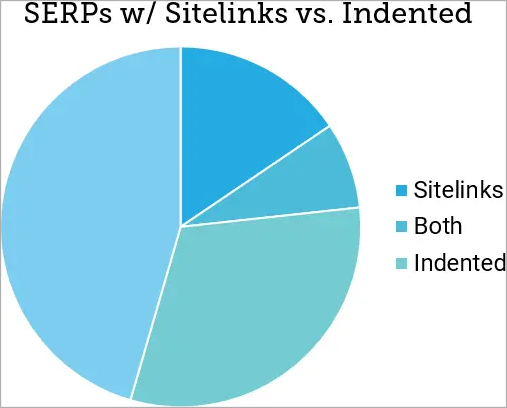 SERP의 23%는 사이트 링크를 확장했고 39%는 들여쓰기 결과를 가지고 있으며 대략 8%는 두 기능을 모두 가지고 있었다.