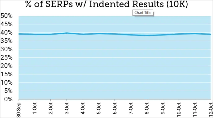 현재 데이터가 있는 13일 동안 Google SERP 1페이지에서 들여쓰기된 결과의 보급률은 약 40%로 안정적이었다.