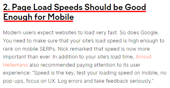로딩 속도가 모바일 SERP 순위를 매길 만큼 충분히 높은지 확인해야 한다.