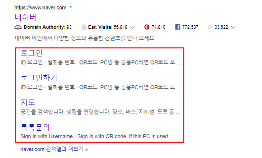 사이트 링크란 위와 같이 어떤 사이트나 블로그를 검색했을 때 아래로 나오는 것을 말한다. (백링크와는 다르다)