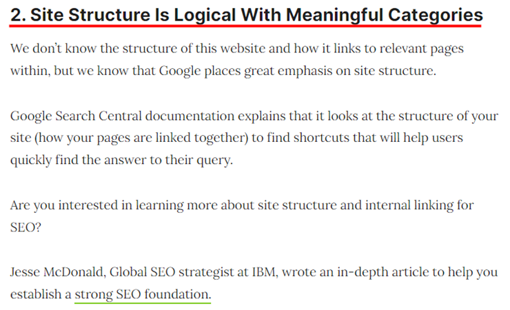구글 검색은 사용자가 검색어에 대한 답변을 빠르게 찾는 데 도움이 되는 사이트 구조를 우선적으로 의미를 부여한다.
