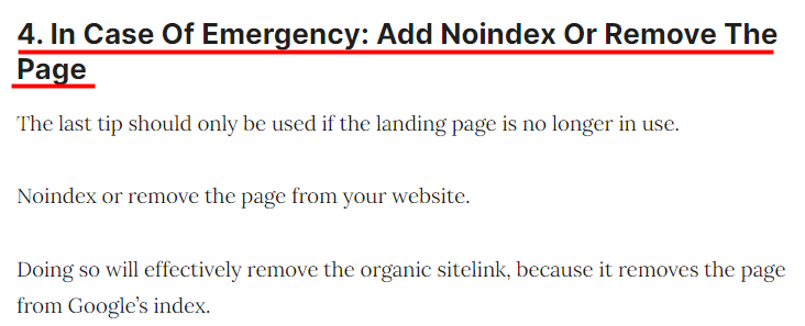 이런 경우 구글 색인에서 페이지가 제거되므로 자연 사이트 링크가 효과적으로 제거된다.