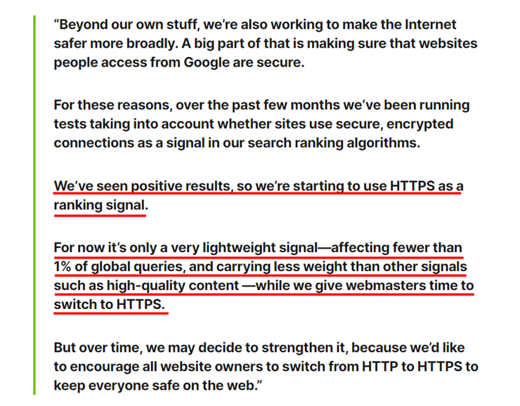 보안 HTTPS 프로토콜은 알려진 구글 검색엔진 최적화 신호라고 할 수 있다.