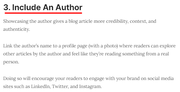 저자의 이름을 프로필 페이지에 연결하면 독자가 저자의 다른 기사를 탐색하고 글을 읽는데 신뢰성을 줄 수 있다.
