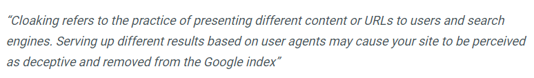사용자 에이전트를 기반으로 다른 결과를 제공하면 기만적인 것으로 인식되어 구글 색인에서 제거된다.