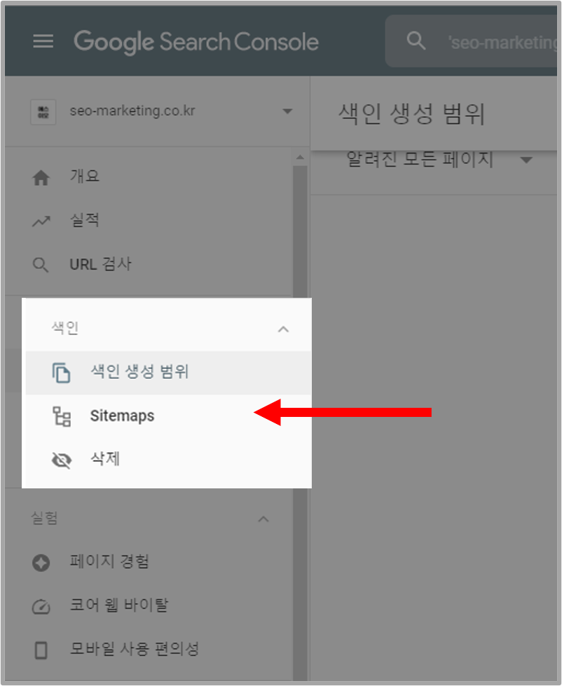 그런 다음 사이드바에서 "색인" -> "사이트 맵"을 클릭한다.