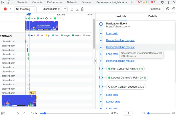 예를 들어 Chrome DevTools에서 the new Performance Insights tab은 렌더링을 차단하는 요청을 나타낸다.