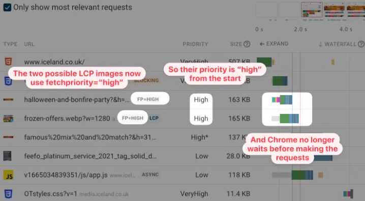 브라우저는 LCP 이미지가 발견되는 즉시 로드를 시작하여 Largest Contentful Paint가 훨씬 더 빨리 실행된다.