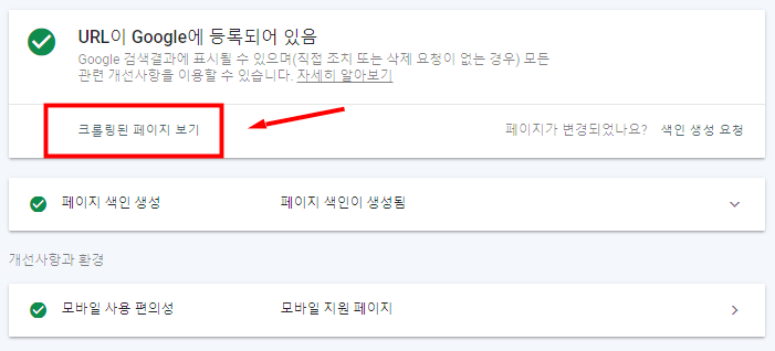 "크롤링된 페이지 보기"를 클릭한다.