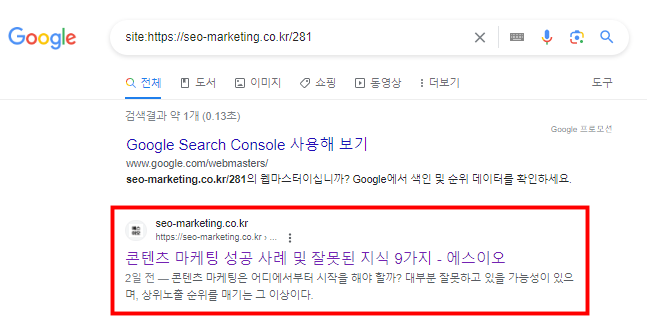 GSC 또는 검색 엔진 자체에서 이를 확인할 수 있다.