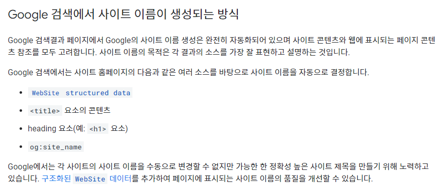 사이트 이름은 구글이 검색 결과 목록에서 표시하는 사이트의 제목과 이름이다.