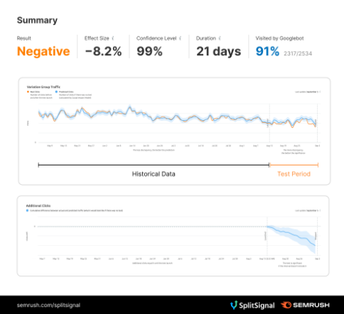 21일 동안 테스트를 진행하였고, 구글봇이 테스트한 페이지의 91% 방문을 하였다.