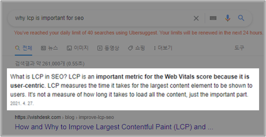구글에는 LCP 지침이 있다.