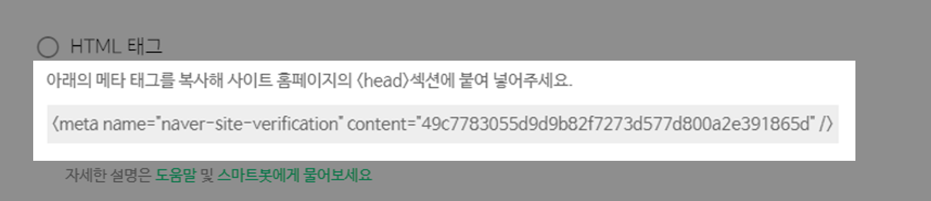 해당 메타태그를 복사해 <head>섹션에 붙이면 된다.